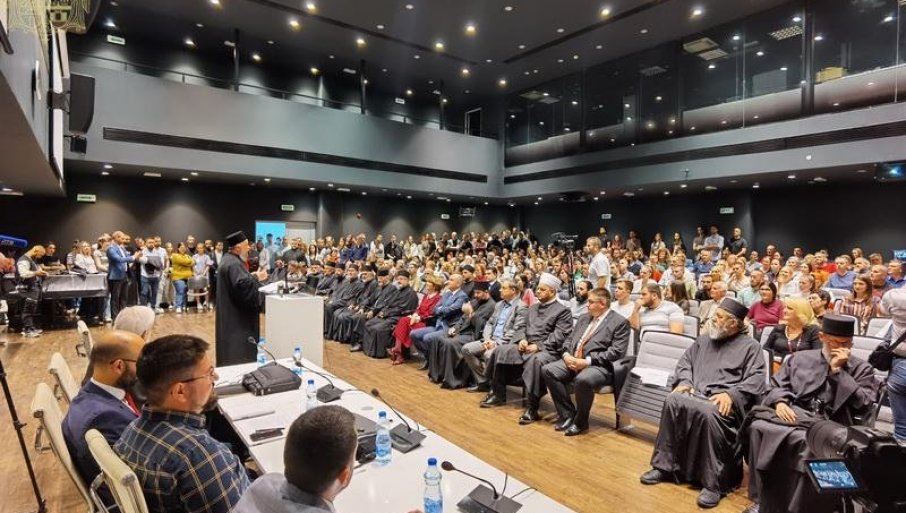 БУДУЋИ ХРАМ НА ЛИМАНУ У СПОМЕН СВИМ МУЧЕНИЦИМА: Препун амфитеатар Ректората у Новом Саду на трибини о цркви и верским слободама (ФОТО)