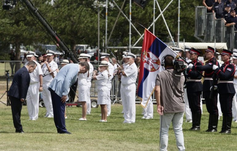 Он је примио рапорт од пуковника полиције Драгана Васиљевића, а потом се поклонио српској застави.