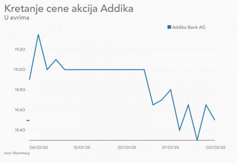 Деонице Addika на берзи у Бечу у уторак су пале за 0,8 одсто, држећи цену од 18,5 евра.