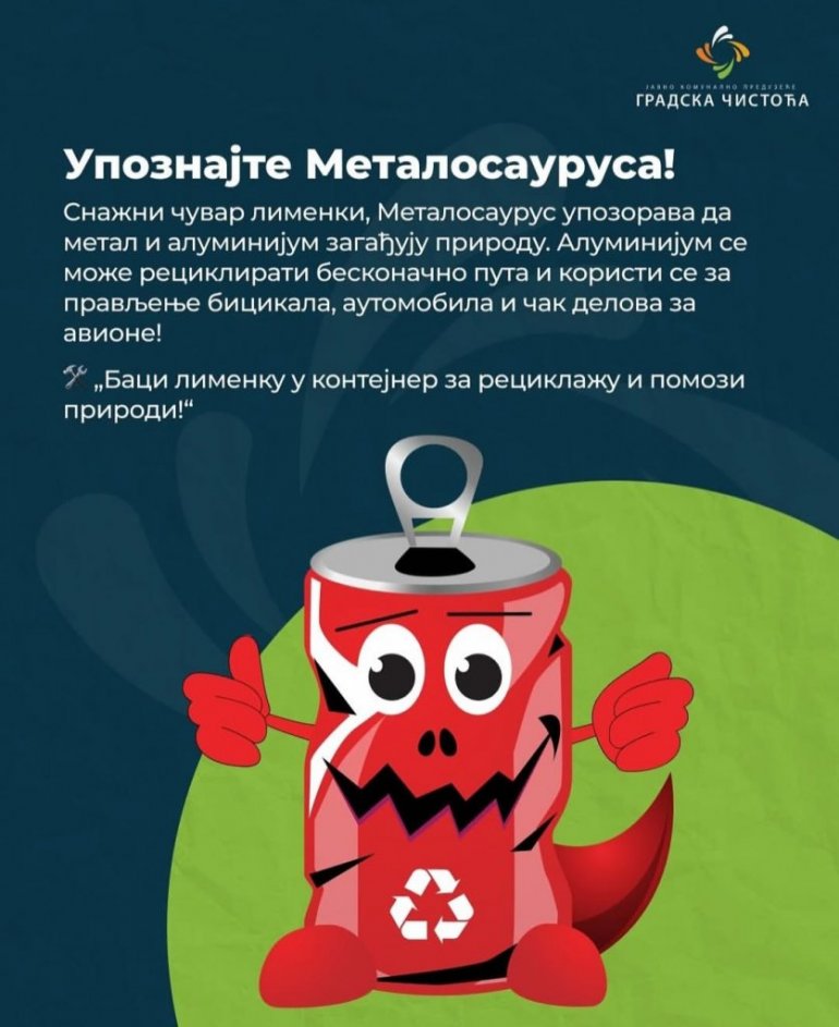 Наиме, у оквиру рада Одељења за еколошку едукацију и информисање , „Градска чистоћа“ је за најмлађе суграђане обезбедила још један циклус анимираних филмова са омиљеним ликовима најмлађих Београђана, „Рециклосаурусима“, које иначе свакодневно могу видети и на брендираним возилима овог јавног комуналног предузећа, које посвећено брине о хигијени престоничких улица.