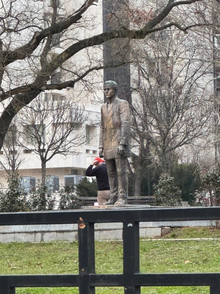 ОЧИШЋЕН СПОМЕНИК ГАВРИЛУ ПРИНЦИПУ: Скинута црвена фарба коју су просуле блокадерке НВО сектора (ФОТО)