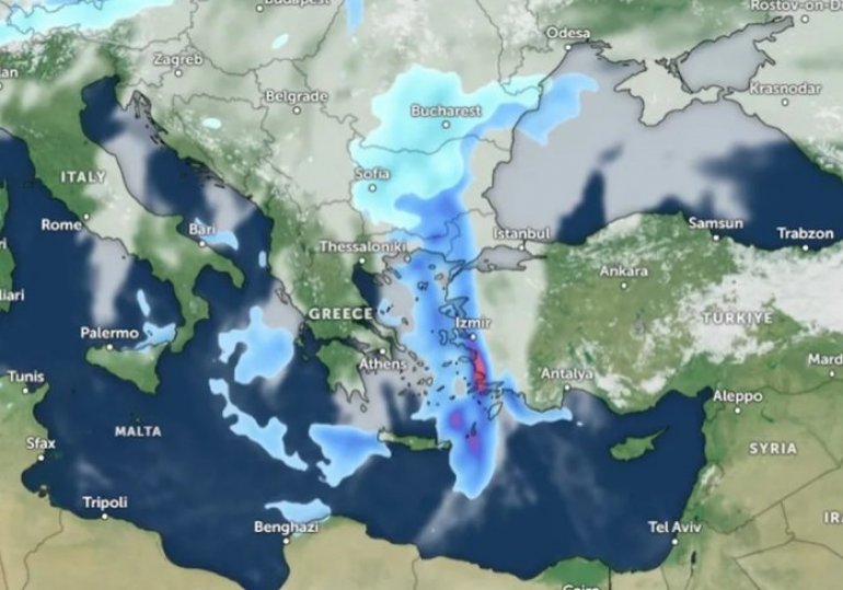 У току вечери и ноћи зимска олуја са снегом својом главнином премештаће се према југу преко Бугарске и захватити северозапад Турске и крајнии североисток Грчке, уз снег чак и на самом обалном подручју, уз олујне ветрове.