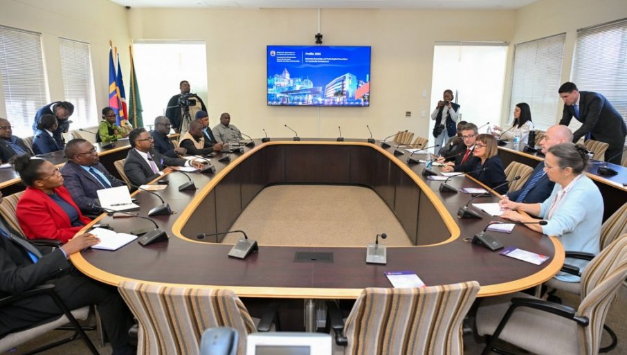 ПРЕДСЕДНИЦА Покрајинске владе Маја Гојковић са сарадницима посетила је данас Научно-технолошки универзитет у Виндхуку, где је разговарано о могућностима сарадње у областима образовања, науке и иновација.