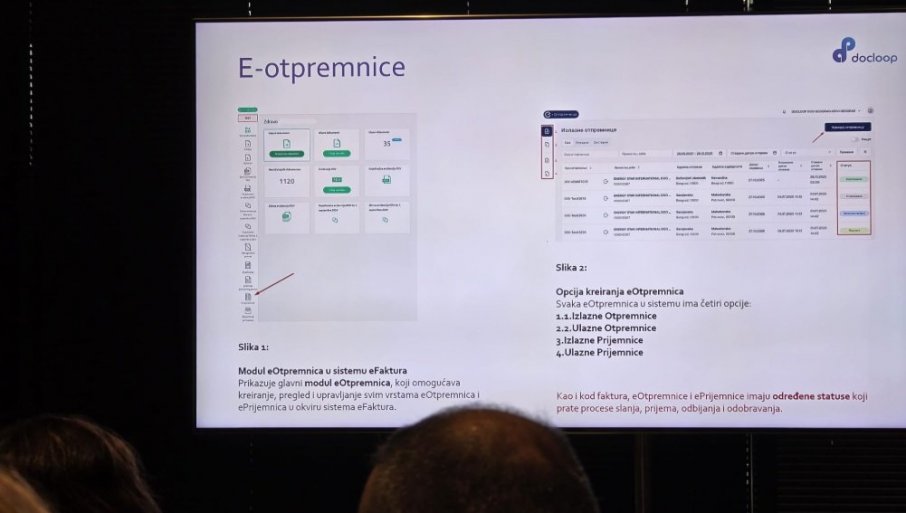 - Е-отпремница је електронски документ који прати кретање робе од пошиљаоца до примаоца. Она садржи све податке које је до сада имала папирна отпремница: ко шаље, ко прима, која роба иде, у којој количини и кадаје предата. Разлика је у томе што се овај документ више не штампа и не потписује руком, већ се размењује кроз информациони систем државе и има правну снагу једнаку папирној верзији - рекао је Бојан, па је додао ко је у обавези да је користи и зашто: