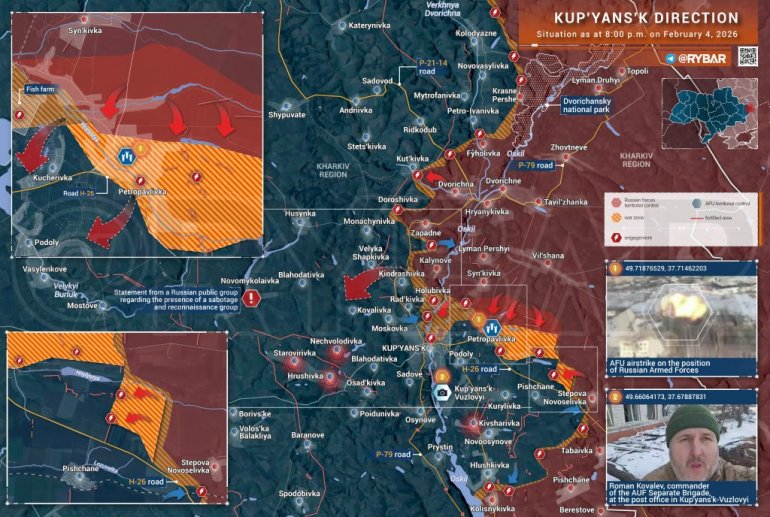 Руски оператери дронова и авиона такође систематски делују на прелазима преко реке Оскол, кроз које непријатељ систематски превози појачања на источну обалу. Ситуација у самом Купјанску остаје напета.