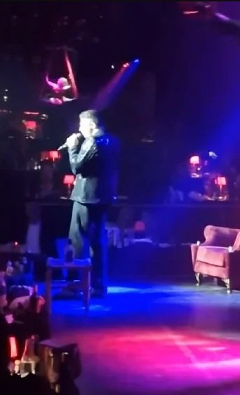 Како се може видети на сликама, Даниел стоји на бини у црном шљокичастом оделу и ужива у свом наступу, не слутећи са чим ће се суочити када сиђе са бине и крене кући.