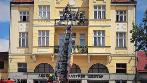 ПРИПАДНИЦИ лесковачке Ватрогасно-спасилачке јединице одржали су данас показану вежбу гашења пожара и спасавања људи. Према њиховом плану то је требало да буде на једном од јавних објеката у граду, па је за ову прилику изабран Лесковачки културни центар.