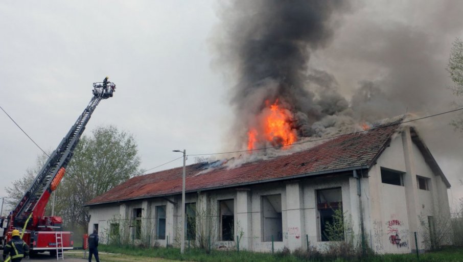 ПОЖАР У СТАРОЈ ЖЕЛЕЗНИЧКОЈ ШКОЛИ КРАЈ ДУНАВА: Смедеревски ватрогасци на терену, са две екипе