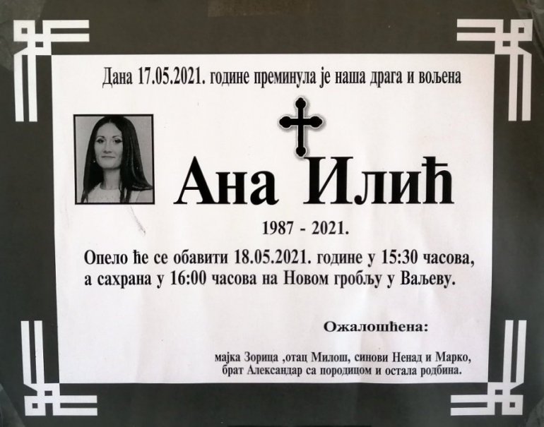 У том делу Ваљева он је претходног дана убио Ану, испред зграде у којој је живела, у тренутку када је полазила на посао у фабрику расхладних уређаја “Горења”. Ана Илић, која је М. М. пријавила за прогањање, биће сахрањена данас у 16 часова, на Новом гробљу у Ваљеву.