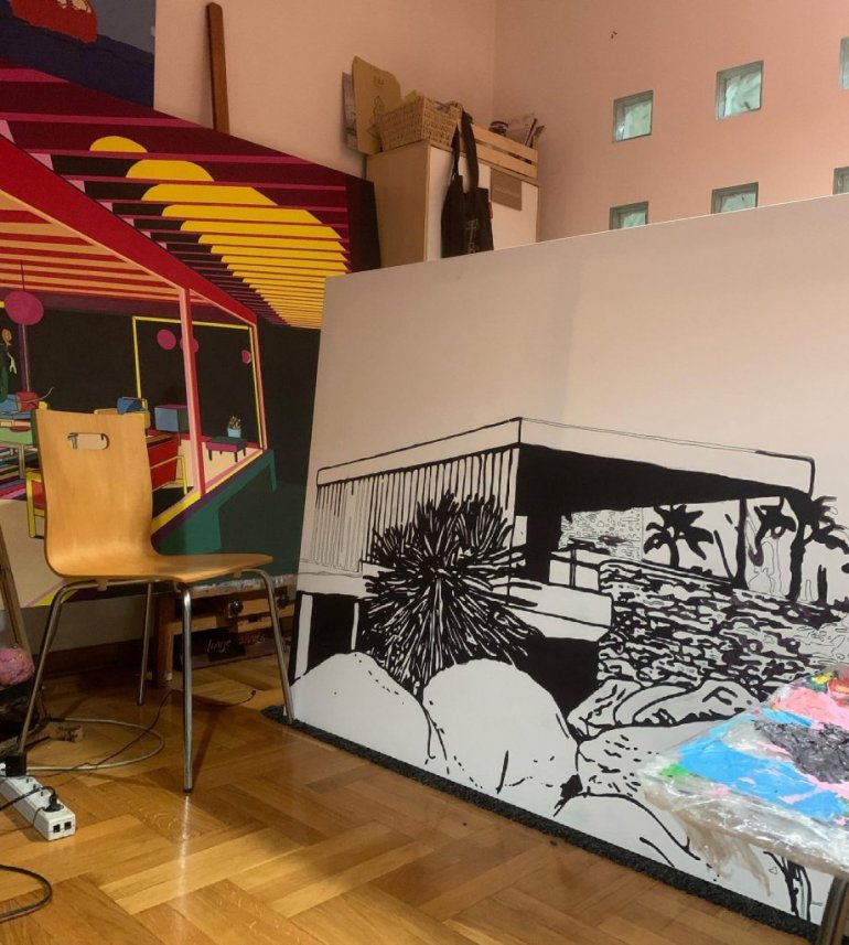 Овај књижевни и ликовни аутор, рођен на Дан победе 1989. у Ваљеву, поставком на Коларцу наставаља серију започету докторском изложбом, на којој је реинтепретирао "Студију случаја" Џона Ентенцеа, односно амерички модернистички експеримент везан за масовно становање. И на актуелној поставци се као мотив појављује "калифорнијска кућа"...