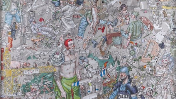 Његов ликовни свет изграђен је на парадоксу, крцат и бременит значењима до немогућности ишчитавања, визуелно неисцрпан. На новим сликама, донетим из Париза, осим појединих фигура сагледаних у фокусу рибљег ока, појављује се класични Бежанић. Окренут тумбе, без горе и доле, цео његов универзум је у покрету, динамичан, свет је опасно зањихан, али са равнотежом у хијерархији дивовских и лилипутанских фигура. Слика је као перпетум мобиле, ирационална чипка, сама увире и извире из себе као исечак непрегледног света. Од националних и интернационалних богова и хероја до андерграунд ликова, занимљивих маргиналцима, преко изузетно решених Тарот карти на великом формату (последњи вредан Тарот), Бежанићев космос је ликовни хипертекст, френетечно подрхтавање на ивици смисла.