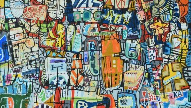 Овај уметник успева да привуче пажњу сасвим другим средствима од актуелних, у виду естетике ружног или шокантног, рекли бисмо чисто ликовним. На његовим сликама нема заправо ничега осим елементарног ликовног говора линије, мрље, боје и слова. Да, слова, ту су издвојене речи, реченице, поруке и исписи, ћирилице помешане са латиницом, јер и слово има своју визуелност као и број, па је и текст нека врста слике, таписерије (текст, лат. textum = ткање).