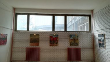 Изложба носи назив ,,У манастиру” и броји девет слика насталих током двогодишњег боравка аутора у српском православном манастиру и раду на докторско - уметничком пројекту.