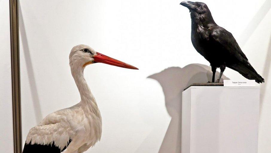 ИЗЛОЖБА "Природа и језик", отворена у Галерији Природњачког музеја (Мали Калемегдан 5), на популаран начин спаја више различитих области: биологију, геологију, анатомију, физику, акустику и осцилације, стручну терминологију, лексику и природу језика, књижевност, кодове, писмо, симболе и музику.