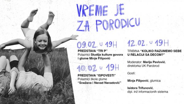 УСТАНОВА културе "Пароброд", од 9. до 12. фебруара организује пројекат "Време је за породицу".