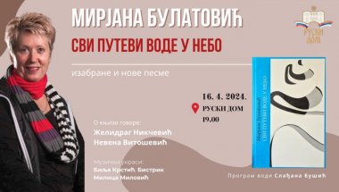 ЗБИРКА поезије Мирјане Булатовић "Сви путеви воде у небо" биће представљена у уторак, 16.априла, у Руском дому у Београду.