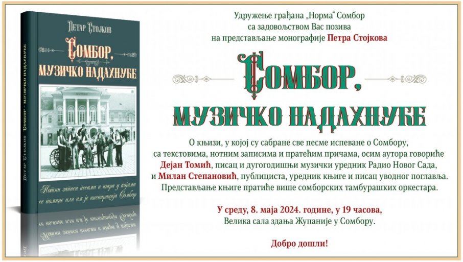 Подразумева се да ће свечаност представљања књиге увеличати и сомборски тамбураши.У њиховој интерпретацији чуће се неке од деведесетдевет песама које је сабрао Стојков.Међу њима највише је староградских и народних („У том Сомбору“, „Фијакер стари“, „Кад се жени Костић Лака“, „Фијакерист“, „Не могу се тачно сетит’ лета“, „Сомборски бећарац“, „Стара фрајла из Сомбора“…...