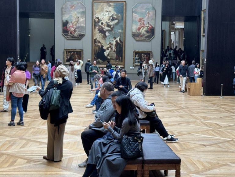 Захваљујући Николи Миловановићу обишли смо Лувр, уверили се у резултате захтевних рестаурација, посетили јединствену документациону салу у којој се чувају подаци о свим сликама од 13. века од 1848. године. Ишли смо и пречицом, кроз кулоаре, ходнике са жицама и струјним кабловима, иза којих се наједном појављују дела великих средњовековних мајстора. У сали код Мона Лизе и највеће слике у Лувру, Свадбе у Кани, увек је гужва.