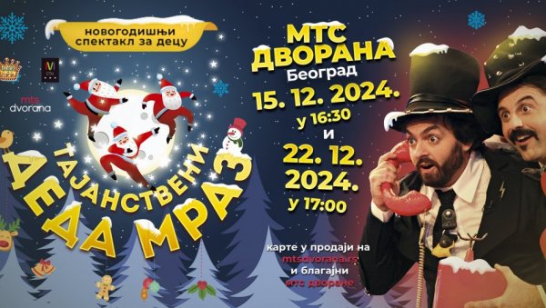 Сасвим оригинални, интерактивни програм за родитеље и децу под називом „Тајанствени Деда Мраз“ под редитељском палицом Ненада Пирната очекује нас у предновогодишњем термину, 15. децембра, у 16.30 ч, у мтс Дворани, а због великог интересовања, сада је додат и нови датум, 22. децембар, у 17 ч, у мтс Дворани.