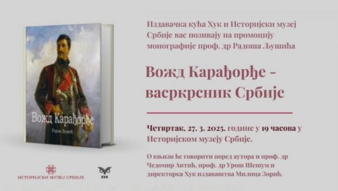 МОНОГРАФИЈА "Вожд Карађорђе - васкрсник Србије" проф. др Радоша Љушића биће представљена у четвртак, 27.марта, у Историјском музеју Србије.