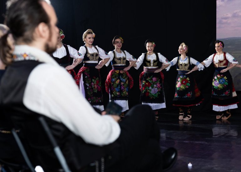 Публика је видела избор кореографија, видео-сегмената и вокалних тачака у извођењу младих професионалних играча анансамбла. Ансамбл се осврнуо на дела кључних личности сценског фолклора: Олге Сковран, Драгомира Вуковића Кљаце, Братислава Бате Грбића, Владете Влаховића Цврце и Радојице Кузмановића.