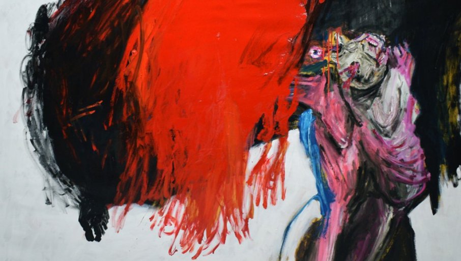 ИЗЛОЖБА слика великог формата названа "Премали гроб за Великог човека" Стефана Стевановића, отворена је у Галерији '73.
