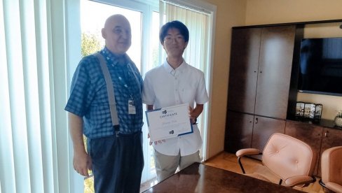 Директор Института за физику у Београду др Александар Богојевић примио је Хана на крају програма праксе и доделио му сертификат о учешћу.