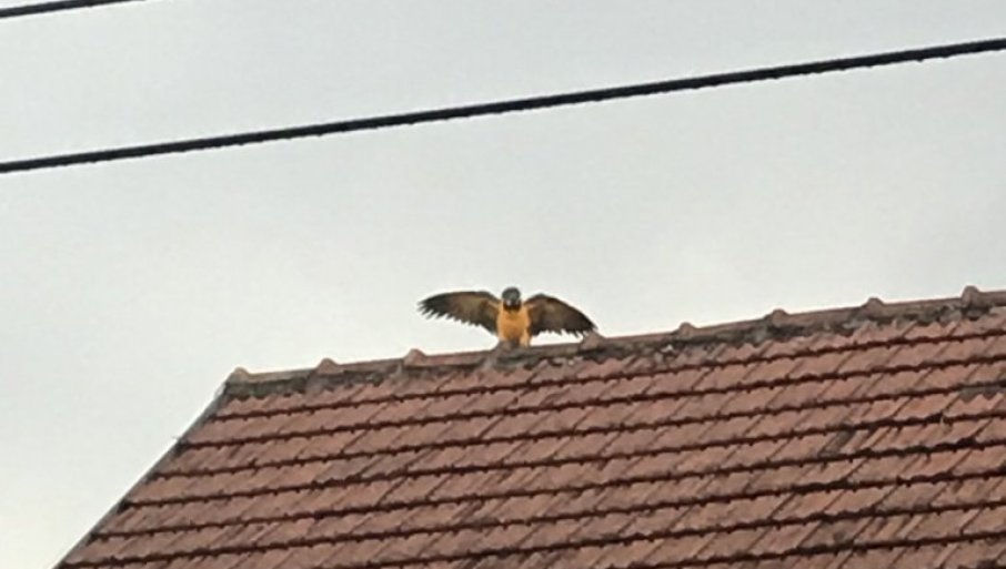ВЕЛИКИ папагај по имену Хектор, запосео је, вечерас, кров једне куће, у насељу Клупци, крај самог друма Лозница-Ваљево.