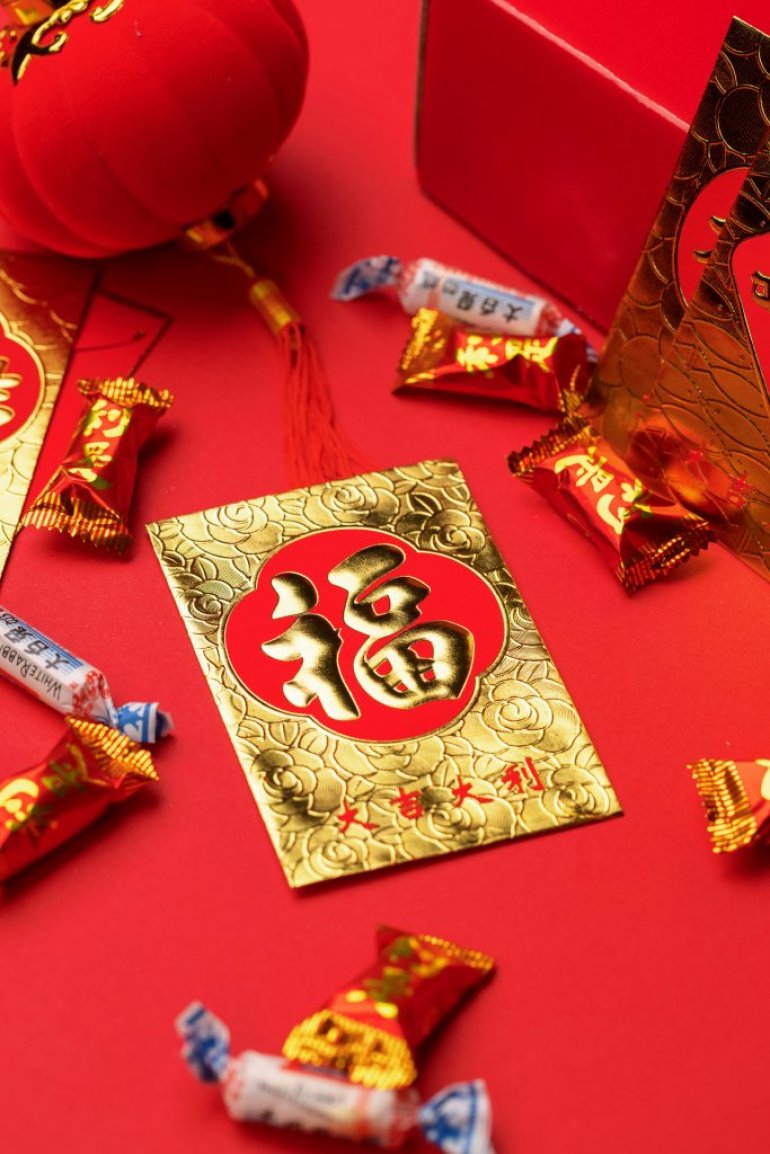 Посебно место имају и Хонгбао тј. црвене коверте које сте сигурно макар једном видели у кинеским радњама. Новчани поклон у износу од 18, 188 или 1888 јуана се ставља у коверту са намером и жељом да прималац у наредној години има стабилност, напредак и финансијску сигурност. Сами износи такође нису случајни јер се заснивају на звучној симболици бројева. Број 1 означава почетак и јединство, док 8 на кинеском звучи слично као реч "богатство" и "просперитет". Зато се комбинација 18 тумачи као сигуран почетак ка благостању.