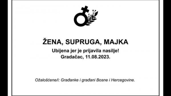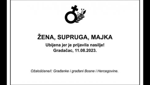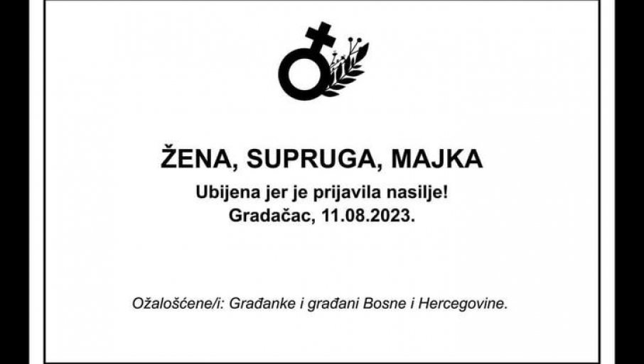 Друштвеним мрежама се шири фотографија са потресним речима, на којој се наводи: "Жена, супруга, мајка. Убијена јер је пријавила насиље", уз данашњи датум који је БиХ завио у црно.