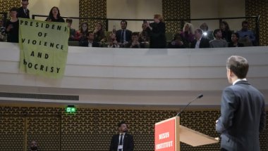ПРОТЕСТ У ХАГУ: Демонстранти прекинули Макронов говор
