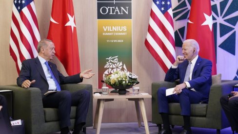 - Сада се припремате за предстојеће изборе. Искористио бих ову прилику да вам пожелим пуно среће - рекао је Ердоган приликом сусрета са Бајденом на маргинама НАТО самита у Вилњусу.