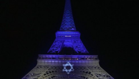 Ајфелова кула је тренутно осветљена плавом и белом бојом у знак солидарности са Израелом, што је један од бројних приказа у европским престоницама, који су праћени интензивним про- и анти-израелским демонстрацијама.