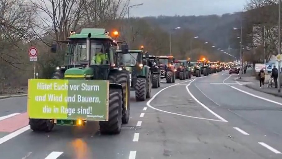НА друмовима Немачке ће данас бити, како је најављено, на хиљаде трактора и пољопривредника, а чак и државне службе због тога изражавају забринутост и овај протест називају највећим у послератној историји. Страхује се да од раног јутра готово неће бити дела државе који ће нормално функционисати.