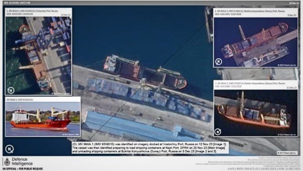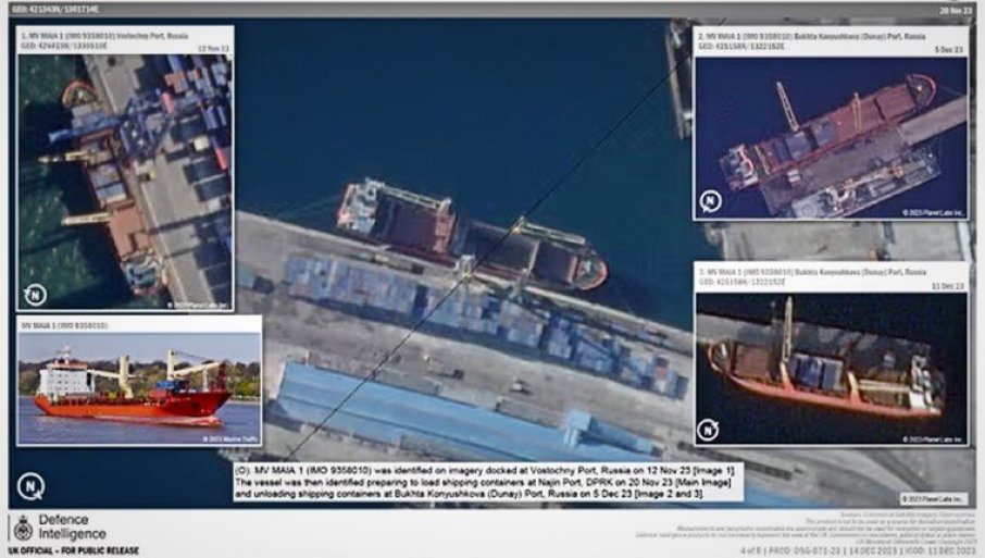 Необјављени извештај британске одбрамбене обавештајне службе у који је Гардијан имао увид показује сателитске снимке три руска брода, Маиа, Ангара и Мариа, снимљене између септембра и децембра, који укрцавају контејнере у севернокорејској луци Најин пре него што су кренули у руске луке на Далеком Истоку.