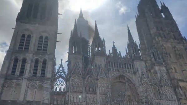ГОРИ ПОЗНАТА КАТЕДРАЛА У ФРАНЦУСКОЈ: Ватрена стихија гута торањ (ВИДЕО)