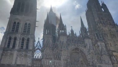 Чувену катедралу у француском Руану захватио је пожар, а снимљено је како пламен гута торањ.