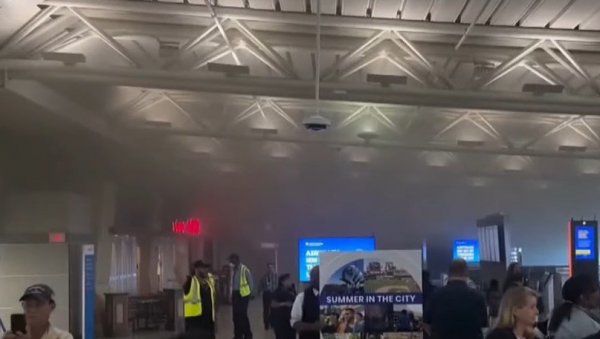 Хаотични снимци са аеродрома дељени путем друштвених мрежа приказују полицију и ватрогасце у акцији на терминалу и масу путника са пртљагом који се гурају око улаза у аеродром док се у позадини чује ватрогасни аларм.