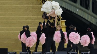 Лејди Гага је током наступа на обали Сене на себи имала бело преје, док су се плесачи окитили ружичастим.