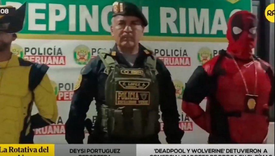 НЕОБИЧНА сцена, снимљена у перуанској престоници Лими у четвртак, приказала је двојицу агената прерушених у Дедпула и Вулверина како упадају у зграду за коју се сумња да је коришћена од стране банде, преноси "Дејли мејл".