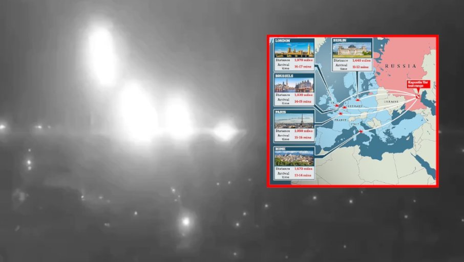 БРИТАНСКИ лист "Дејли мејл" оценио је да би балистичка ракета "орешник" могла да стигне до било ког европског града за мање од 20 минута.