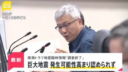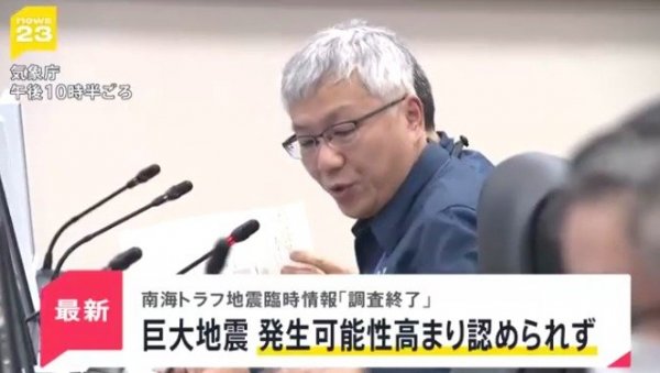 Након што је истрага завршена, агенција је објавила да се "не сматра да је могућност појаве мега земљотреса већа него уобичајено".