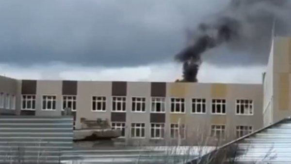 ДРАМАТИЧНО У КУРСКУ: Запалио се кров школе након украјинског напада дроном (ВИДЕО)