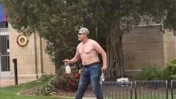 Човек без кошуље, који је корачао напред-назад чекајући њихов долазак, почео је да баца импровизоване молотовљеве коктеле на цивиле.