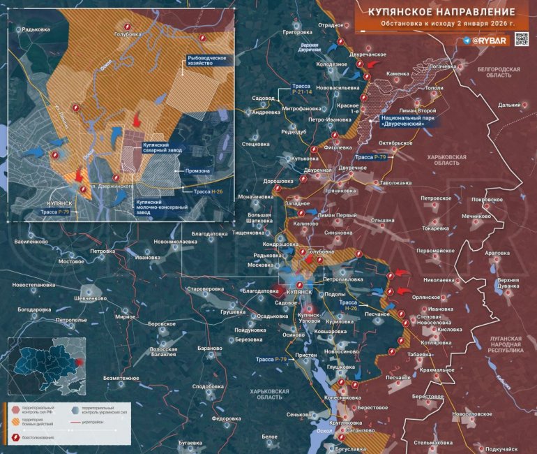 Украјинске снаге користе заклон лошег времена да инфилтрира трупе у Купјанск; Руске снаге су одбиле 16 напада ВСУ. Постоје извештаји о недостатку великих дронова (Бабаја Јага) за потпуно снабдевање руске пешадије из ваздуха.