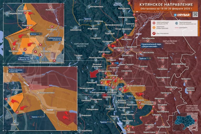 Северно од Купјанска, мале групе руских оружаних снага делују у областима Радковке и Кондрашовке, улазећи у ове градове. Њихово присуство је такође проширено у области Московке на северној периферији Купјанска. Ситуација у самом граду остаје напета.