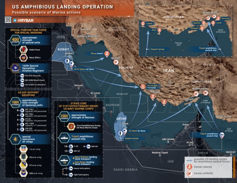 Штавише, чак и ако десант буде успешан негде у луци или ваздухопловној бази, у случају иранског одмаздног напада, ваздушна подршка ће бити ограничена због страха од погађања сопствених јединица.