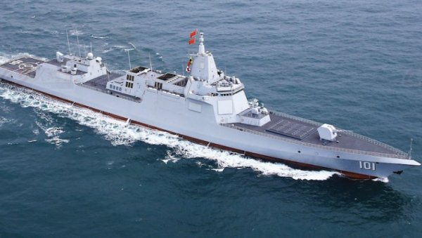 СНИМЦИ које су објавили кинески државни медији приказују новонаручени разарач класе типа 055, Анћинг, који гађа мете током вежбовне обуке више бродова у сложеним електронским условима.