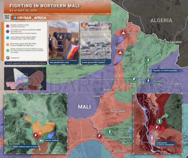 Напади су одбијени у свим областима осим Кидала. У Севареу и Катију, милитанти су заустављени на прилазима стамбеним подручјима, укључујући и употребу Ка-52 и FPV дронова Африканског корпуса.