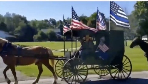 ВИДЕО-СНИМАК који приказује параду коњских запрега означених паролом "Трамп 2020" и америчким заставама шири се друштвеним мрежама - мада неки тврде да су у питању „лажне вести“, питајући се зашто би Амиши подржали звезду ријалитија за председника.